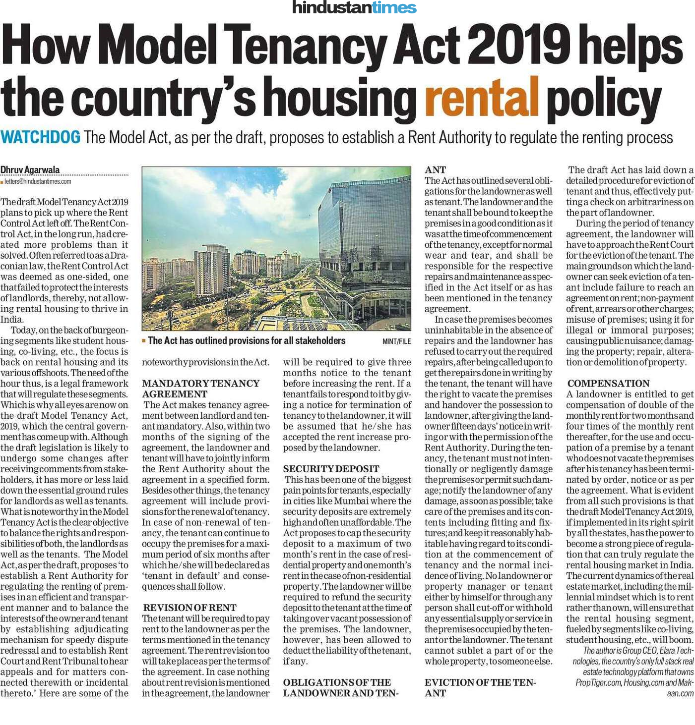 watchdog The Model Act, as per the draft, proposes to establish a Rent Authority to regulate the renting processThe draft Model Tenancy Act 2019 plans to pick up where the Rent Control Act left off. The Rent Control Act, in the long run, had created more problems than it solved. Often referred to as a Draconian law, the Rent Control Act was deemed as one-sided, one that failed to protect the interests of landlords, thereby, not allowing rental housing to thrive in India.Today, on the back of bur...