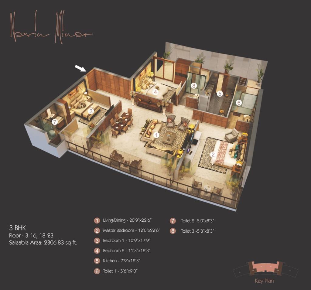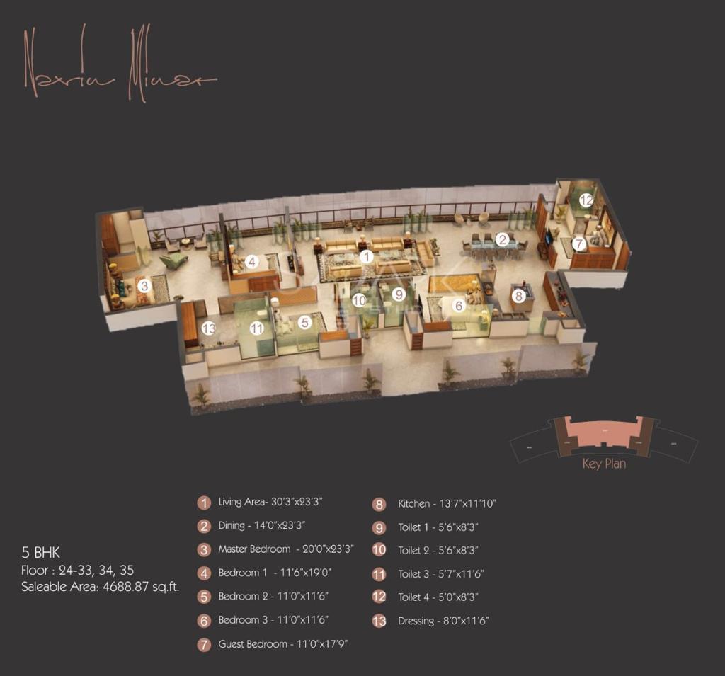 5. First residences in India with 13 feet floor to floor height, making them bungalows in the sky with 3, 4, 5 BHK typologies starting from approx 6 Cr onwards.
